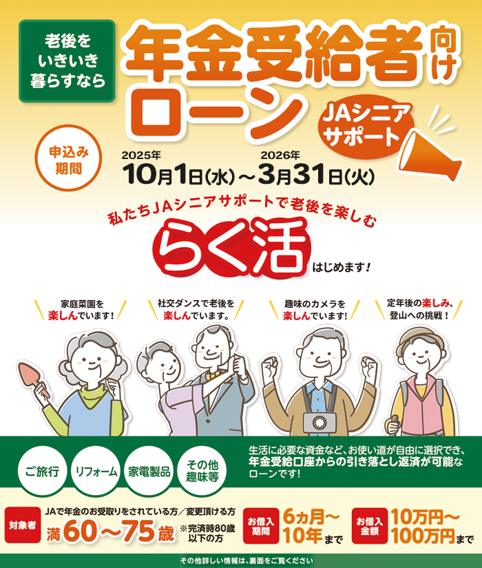 年金受給者向けローン「JAシニアサポート」